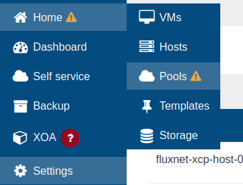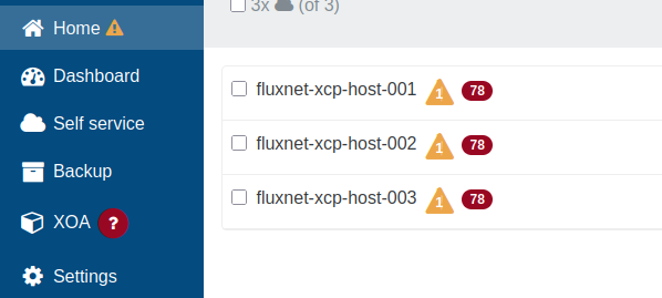 - The yellow caution triangle with 1 in this case is indicating that XCP-ng Pro Support is not available for source users of XO.