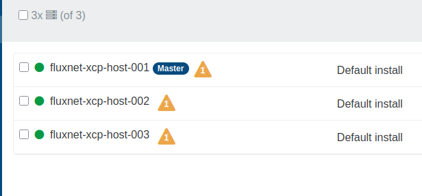 To finish creating the pool in XO, I add the remaining hosts on the previous Settings > Servers page. Notice how all three are currently shown.