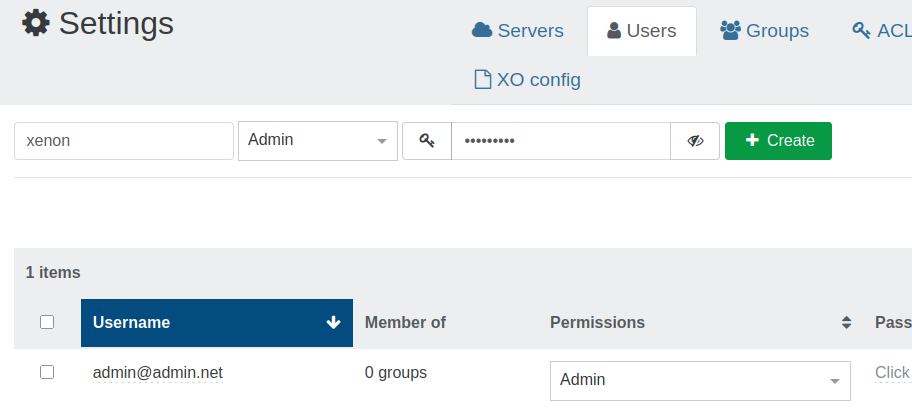The existing ‘[email protected]’ account is listed below. To create a new account, use the boxes above to fill in username and password. Also, since I will be using the new account instead of the existing account, I click on ‘User’ in the drop-down menu and select ‘Admin’. Click ‘Create’ and it should show up below.