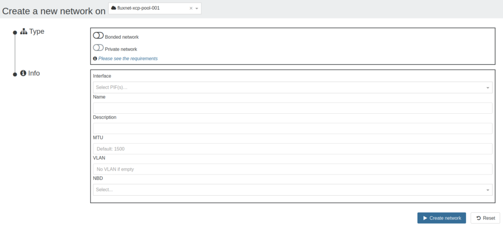 Think of networks here like a virtual switch between VMs and the physical network interface (PIF), or the last hop before the actual device. Common reasons to define networks within Xen Orchestra (and thus XCP-ng) would be things like assigning VLANs to VM virtual network interfaces, creating LACP bonds, etc. I will be focusing on VLAN networks, and more information on bonding can be found in the official documentation.