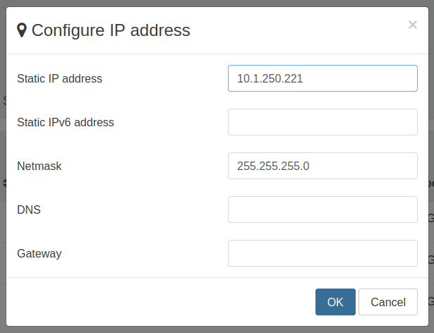 Configure IP address and netmask. DNS and gateway are not necessary since this subnet is isolated. Click ‘OK’ to continue. Navigate to the remaining hosts and repeat this process.