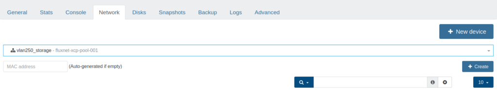 Click ‘New device’, then choose the Network for the storage VLAN in the drop-down menu. Click ‘Create’.